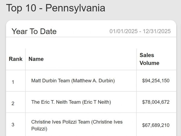 Our Team Ranked #1 in the state of Pennsylvania in for volume of Real Estate Sold in the year 2025. EXP Realty is the largest independent brokerage in the United States.